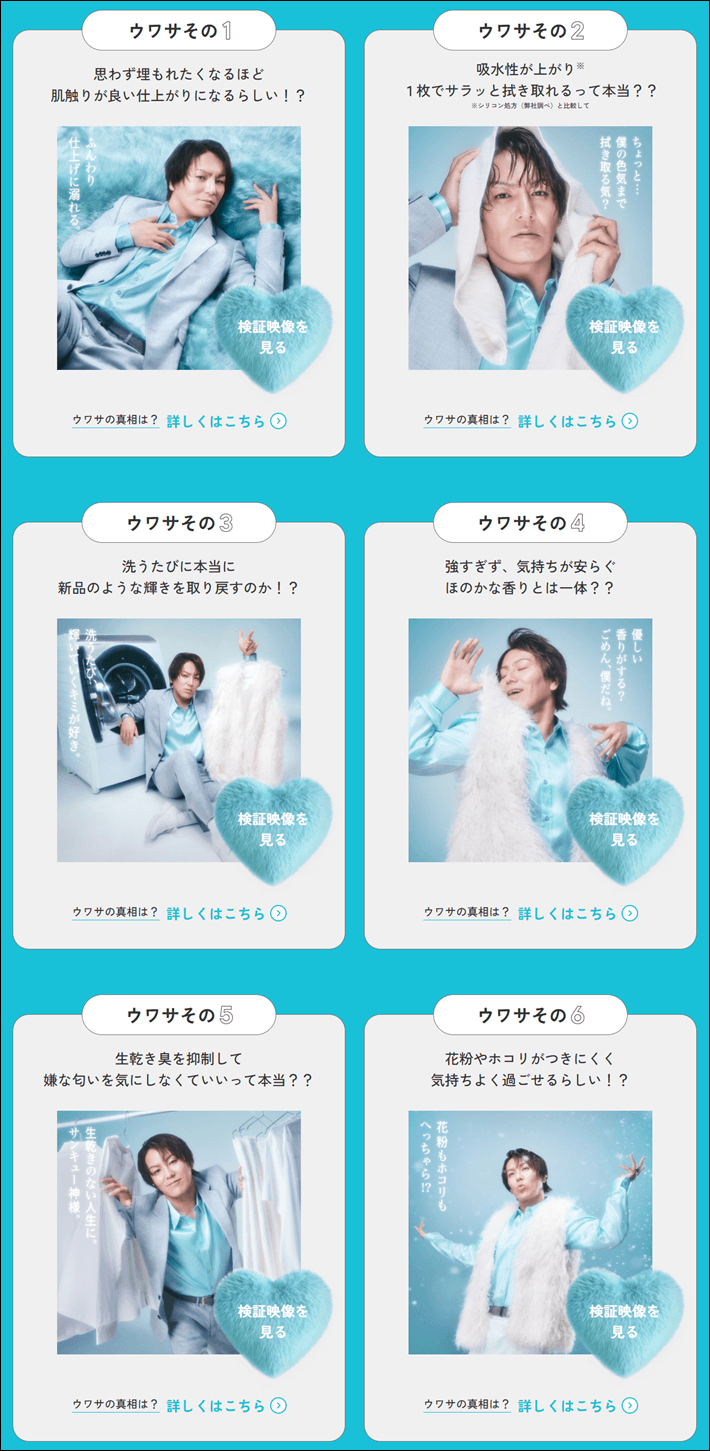 別途用意された特設サイトには、ショート動画が掲載されており、「ソダテルラボ」の柔軟剤が持つ6つの機能がコミカルに表現されています。