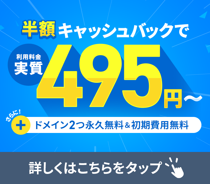 - 「独自ドメイン永久無料特典」で本来有料の独自ドメインが無料で取得できる