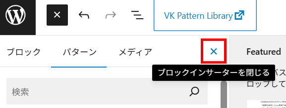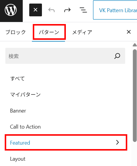 「パターン」タブをクリックすると、パターンのカテゴリー一覧が表示されます。