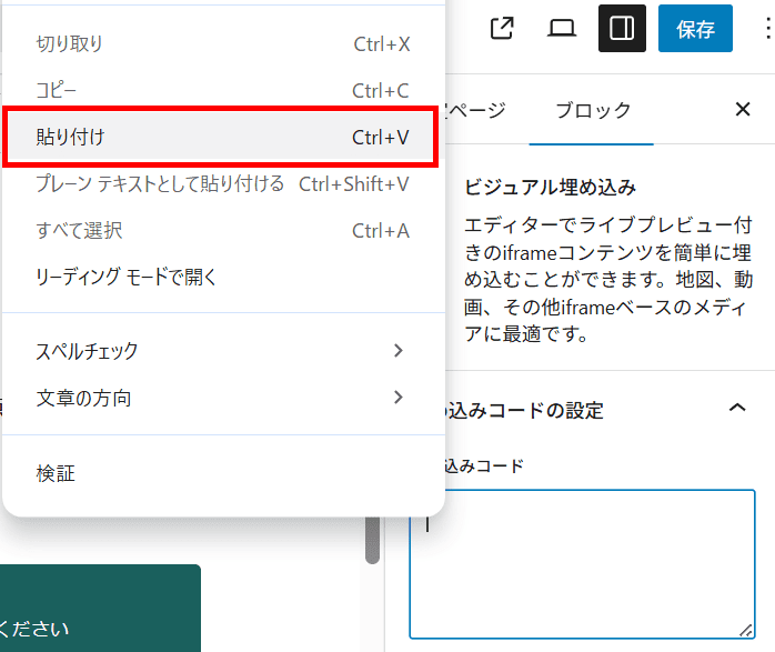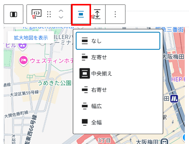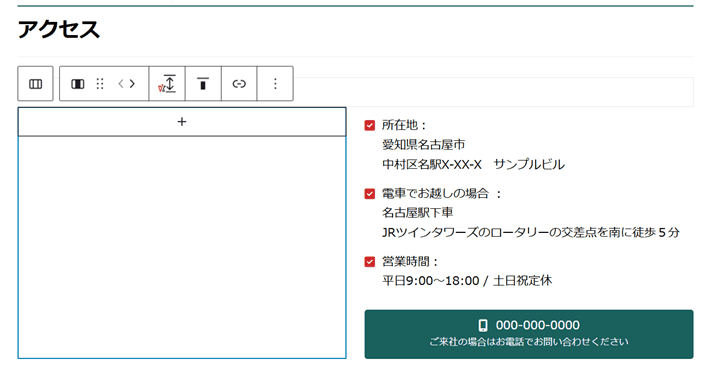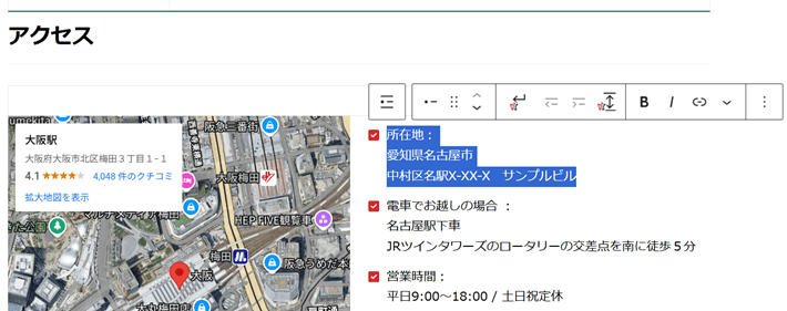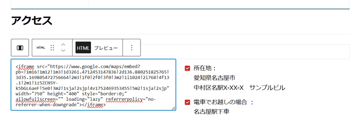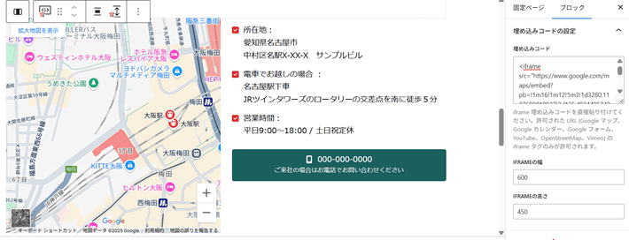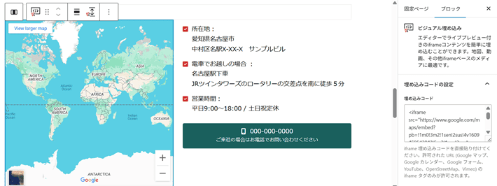 - 『Google マップ』の地図は、ビジュアル埋め込みブロックを使って埋め込める
