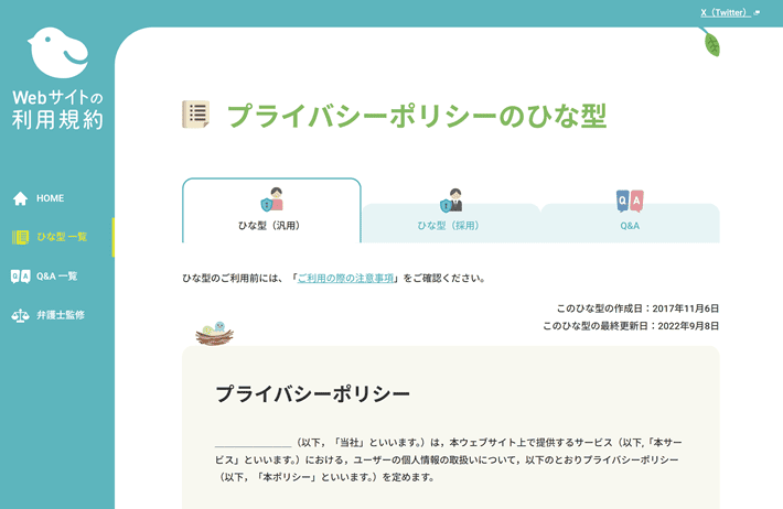 ブラウザの別タブで「プライバシーポリシーのひな型」を表示します。