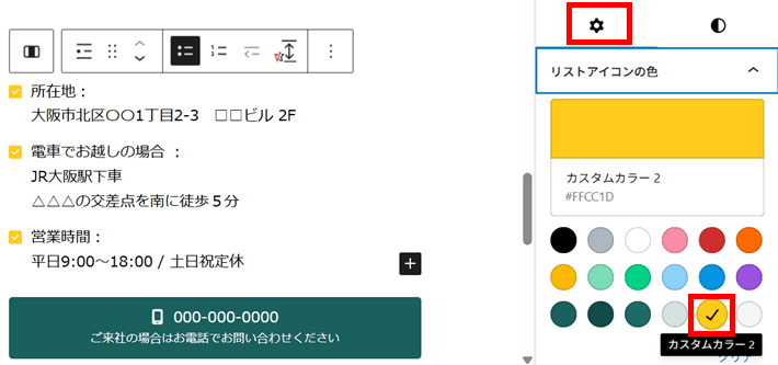 - スタイル:デフォルト(画面右の設定サイドバー)