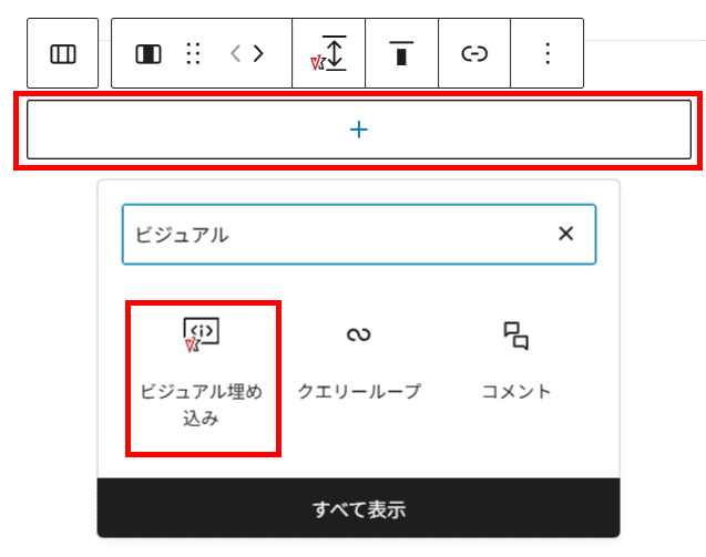 上記手順2で使用するブロックは、「カスタムHTML」または「ビジュアル埋め込み」です。