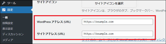 上記の転送設定に加えて、WordPress管理画面内の「設定 > 一般」の画面にある「WordPress アドレス (URL)」「サイトアドレス (URL)」を、「https」から始まるアドレスに変更してください。