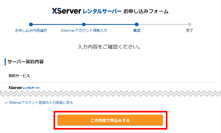 入力した情報に間違いがないかを確認して、この内容で申込みするをクリックしてください。