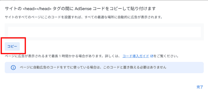 1. Googleアドセンスの管理画面でコードをコピーする