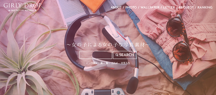 かわいらしい雰囲気の素材が多く、ファッションや美容、カフェといったカテゴリーから検索可能です。加工済みの画像が多いため、アイキャッチにもぴったりですよ!