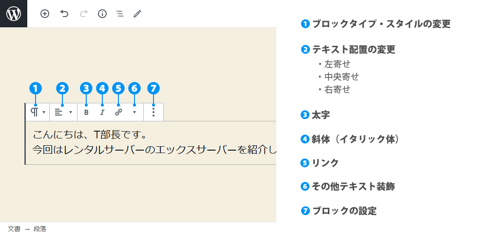 ブロックによって多少の違いはあるものの、メニューバーでいろいろな操作ができます。記事を書く際は「3」と「5」をよく使います。