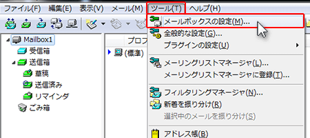 1.「ツール(T)」の「メールボックスの設定(M)」を選択