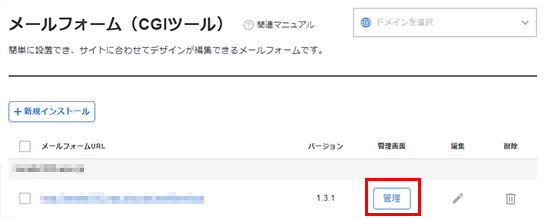 設定を変更したいメールフォームの「管理」ボタンをクリックしてください。
