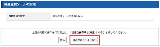 「自動返信メールの使用しない」を選択し、「設定を保存する(確認)」をクリックしてください。
