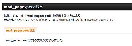 「mod_pagespeed設定」を有効にすると、ファイルを圧縮してデータ転送量を削減する、同種のファイルを一まとめにして無駄な通信を削減するなどの最適化処理を実施します。