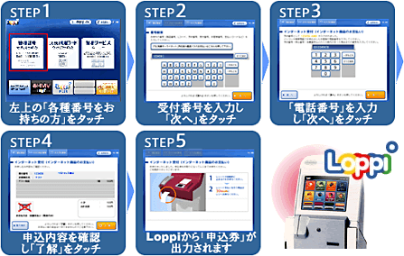ローソン店内に設置されているLoppi (情報端末)を用いて、レジで支払う際に必要な「申込券」を入手してください。