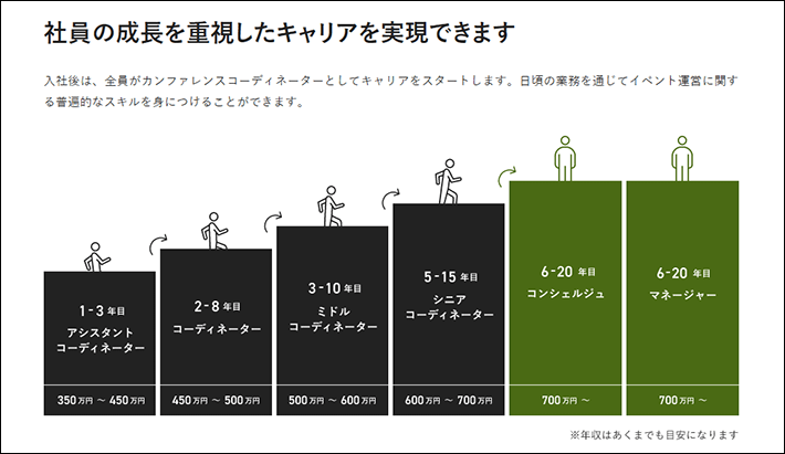 自社のキャリアパス制度を公開すれば、求職者は入社後の「成長して活躍する自分」をイメージしやすくなるでしょう。
