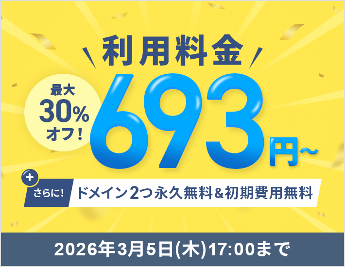 国内シェアNo.1※レンタルサーバー「エックスサーバー」では2026年3月5日(木)17:00まで、サーバー利用料金が最大30%オフになる期間限定キャンペーンを開催中です!